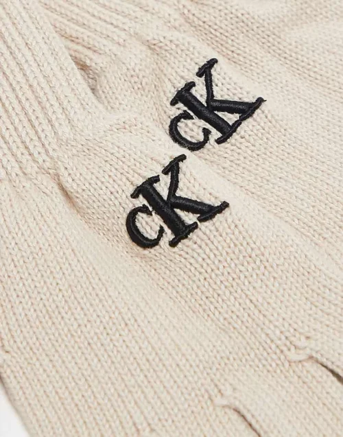 Calvin Klein Jeans Logo Knitted Gloves In Cream For Women Birch