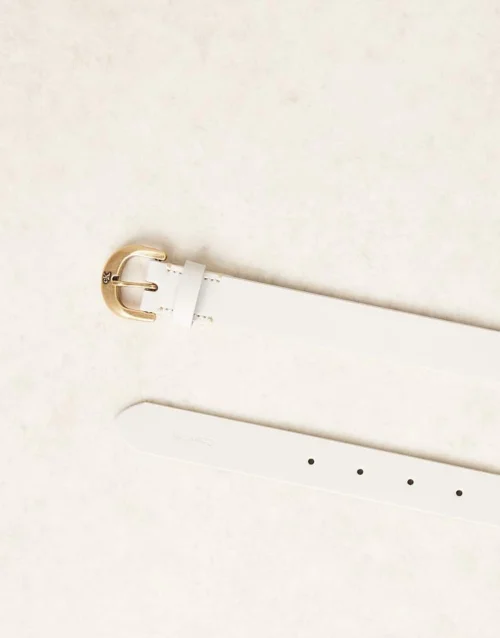 Calvin Klein Jeans Gold Buckle Belt In Cream For Women Cream/gold