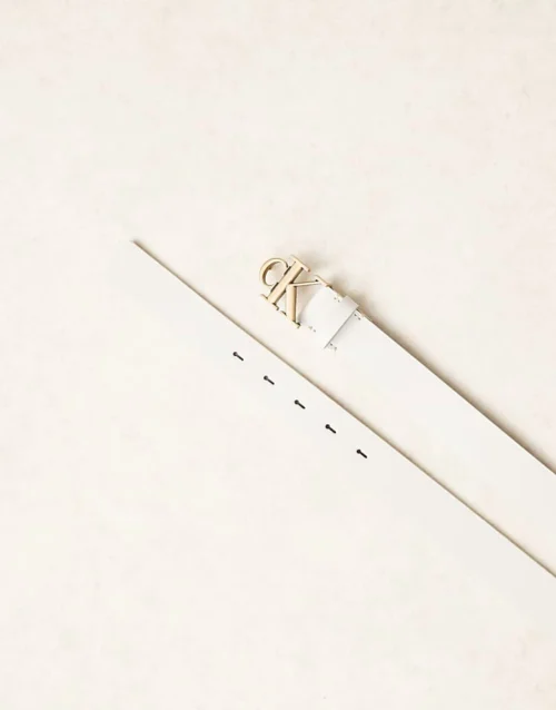 Calvin Klein Jeans Logo Buckle Belt In White For Women Silver Birch/tumbl