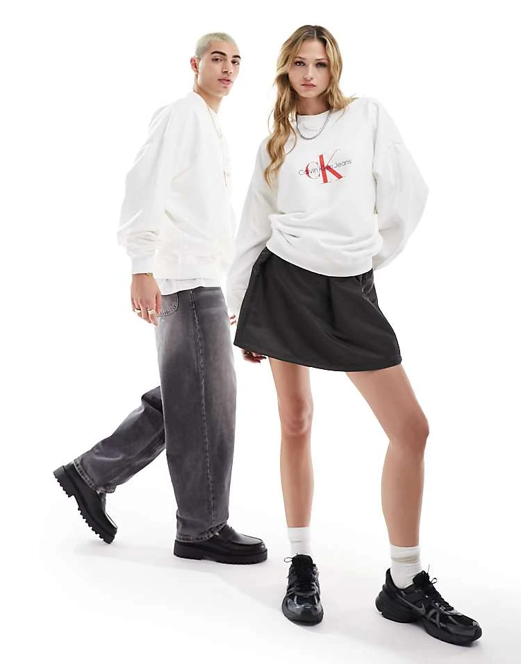 Calvin Klein Jeans Archival Monologo Crew Neck Sweatshirt In White For Unisex Bright White