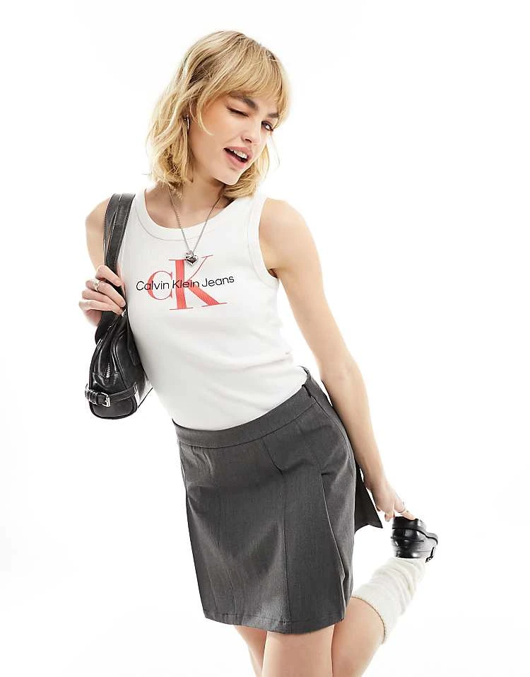 Calvin Klein Jeans Archival Monologo Rib Tank In White For Women Bright White