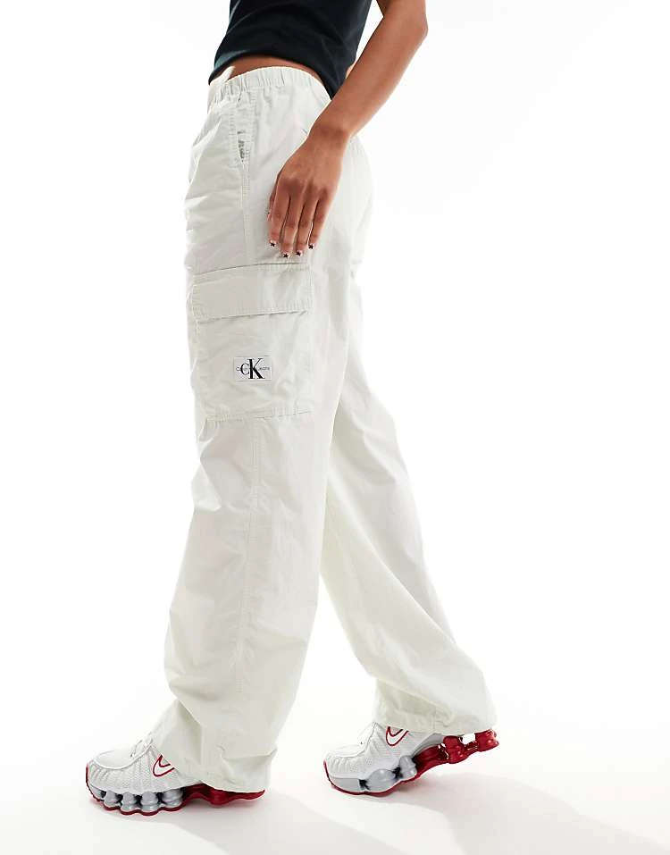 Calvin Klein Jeans Cargo Trouser In White For Women Icicle