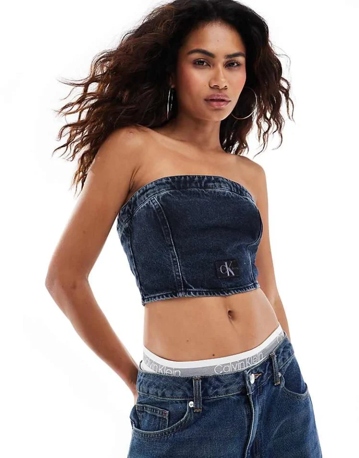 Calvin Klein Jeans Denim Tube Top In Dark Wash For Women Denim Dark