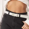 Calvin Klein Jeans Gold Buckle Belt In Cream For Women Cream/gold