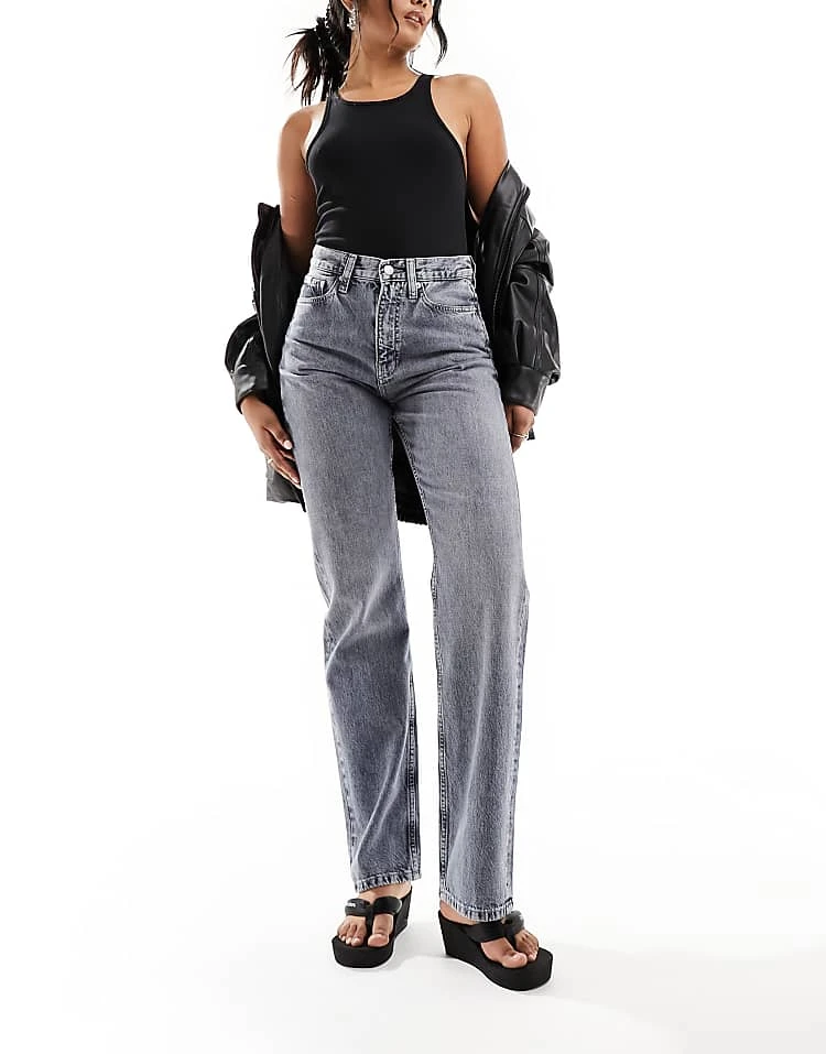 Calvin Klein Jeans High Rise Straight Jean In Grey For Women Denim Grey
