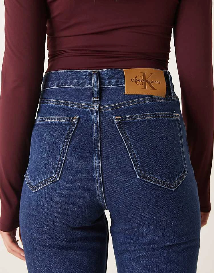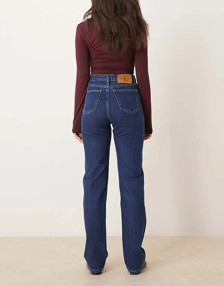 Calvin Klein Jeans High Rise Straight Jeans In Dark Wash For Women Denim Dark