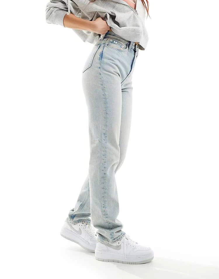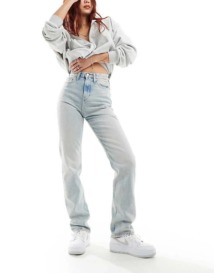 Calvin Klein Jeans High Rise Straight Jeans In Light Wash For Women Denim Light