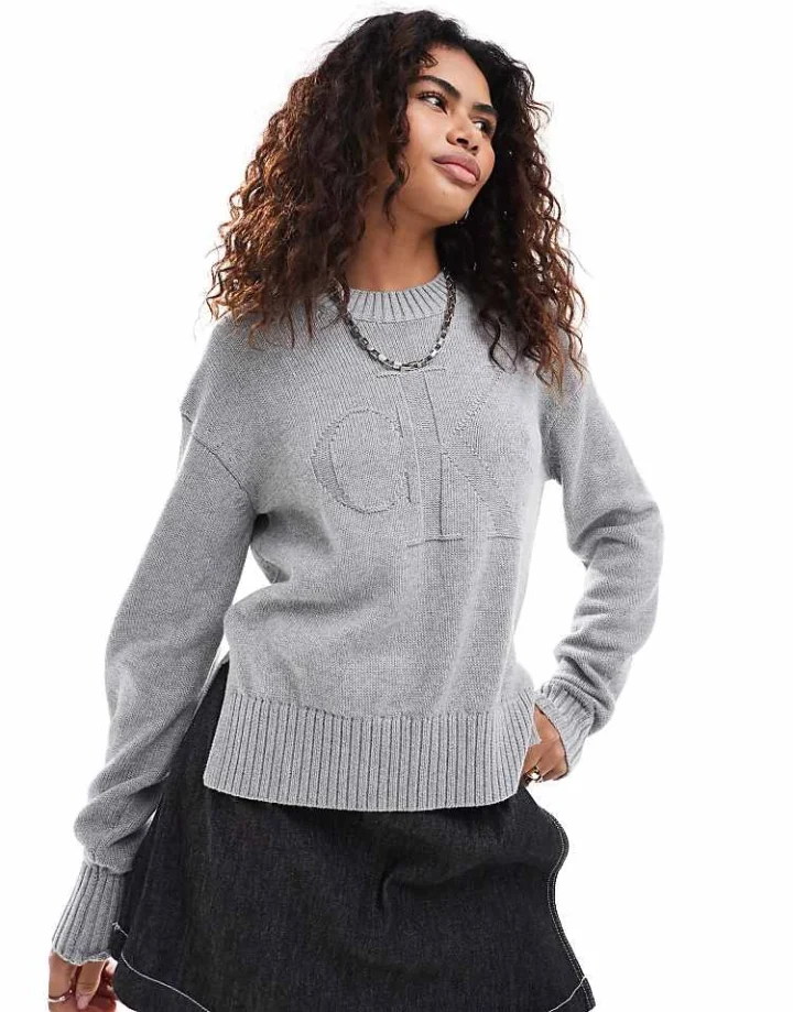 Calvin Klein Jeans Intarsia Loose Jumper In Grey For Women Grey Heather