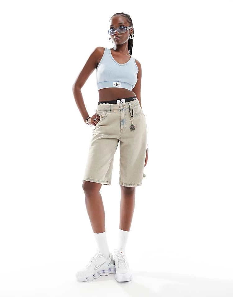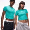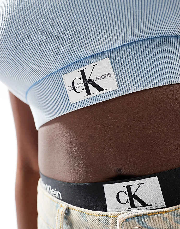 Calvin Klein Jeans Label Washed Rib Crop V-neck Top In Blue For Women Dusk Blue