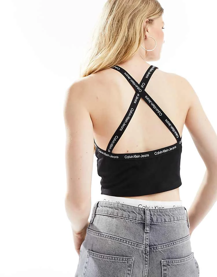Calvin Klein Jeans Logo Elastic Strappy Top In Black For Women Ck Black