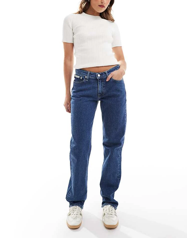 Calvin Klein Jeans Low Rise Straight Leg Jeans In Mid Wash For Women Denim Medium