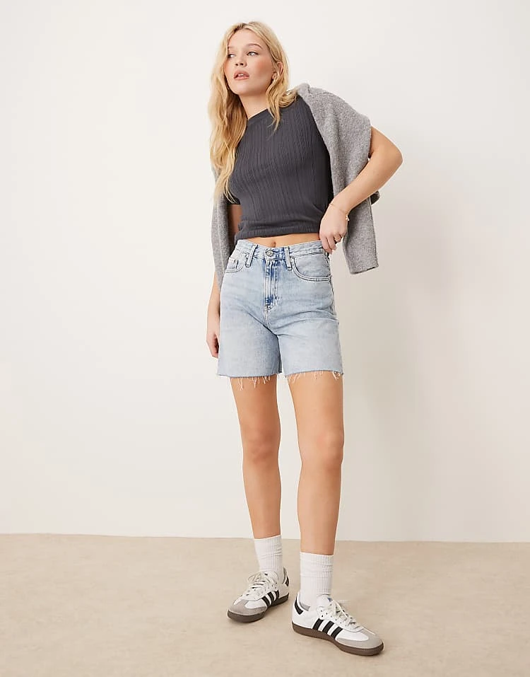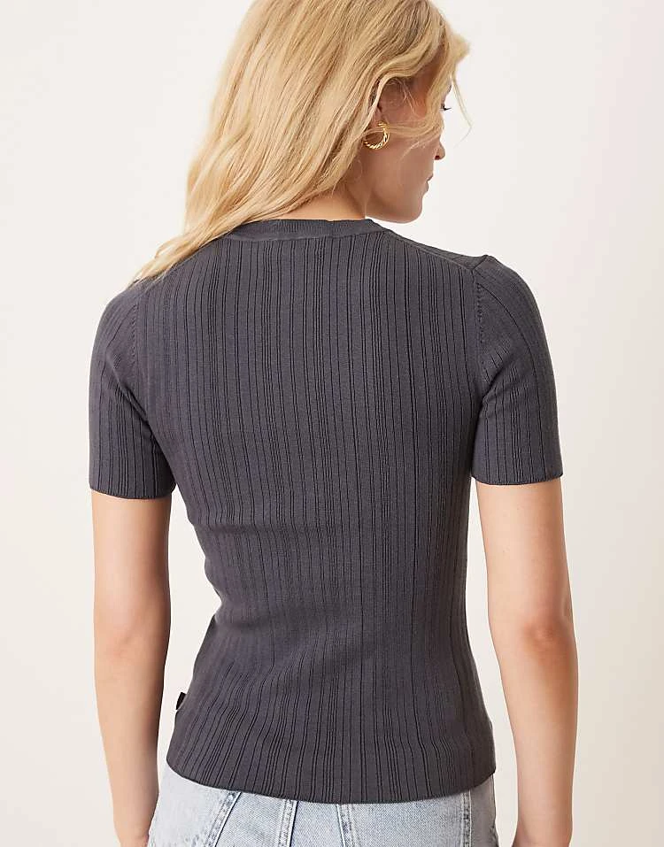 Calvin Klein Jeans Ribbed T-shirt In Dark Grey For Women Ebony