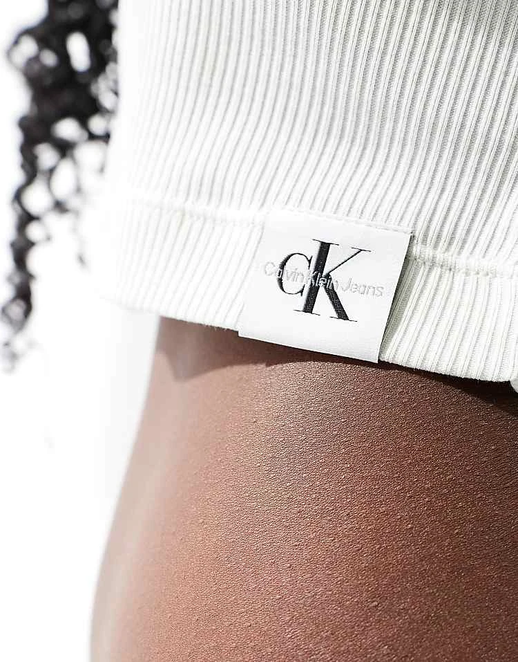 Calvin Klein Jeans Seaming Rib Tank Top In White For Women Icicle