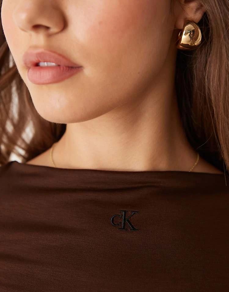 Calvin Klein Jeans Sheer Layered Top In Brown – ASOS Exclusive For Women Antique Brown