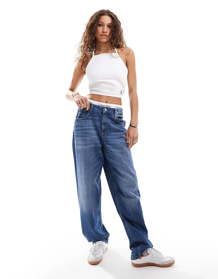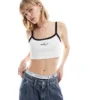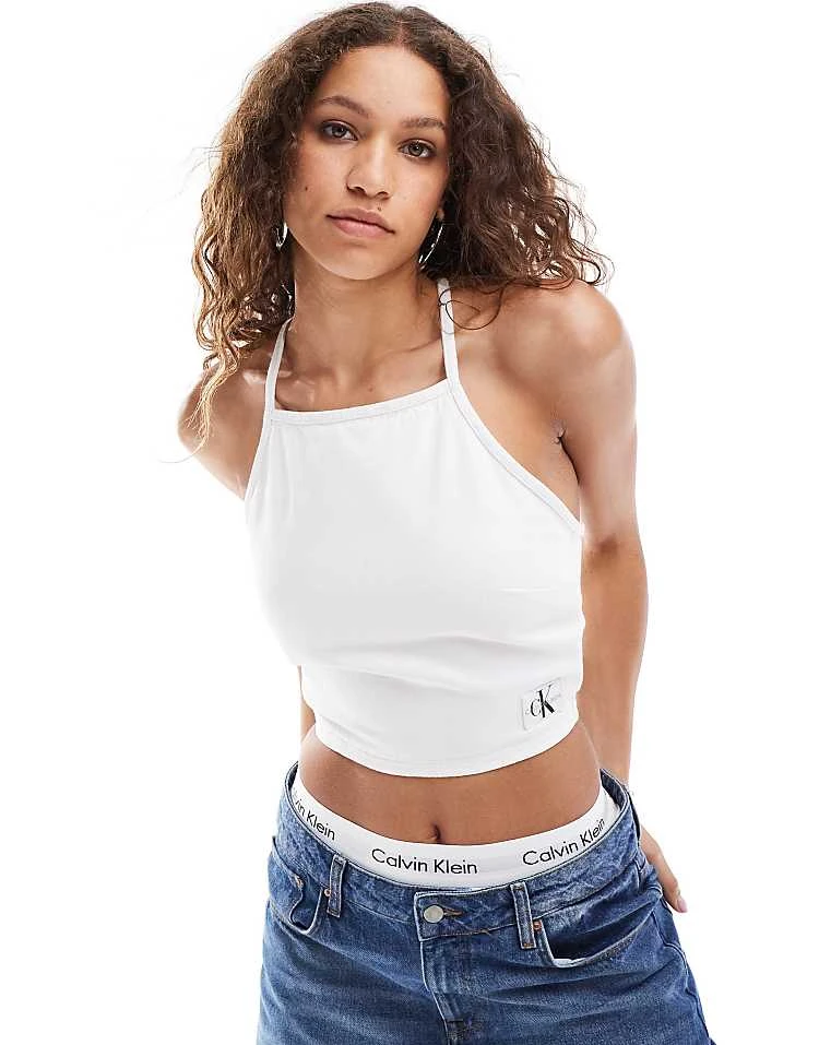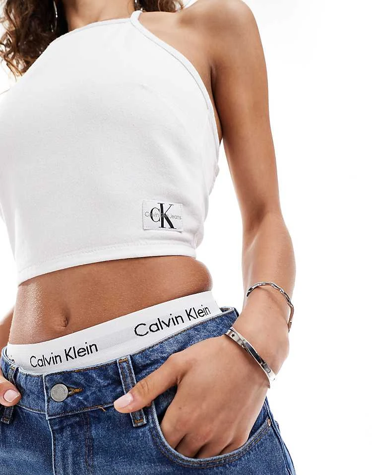 Calvin Klein Jeans Tie Detail Crop Top In White For Women Denim Light