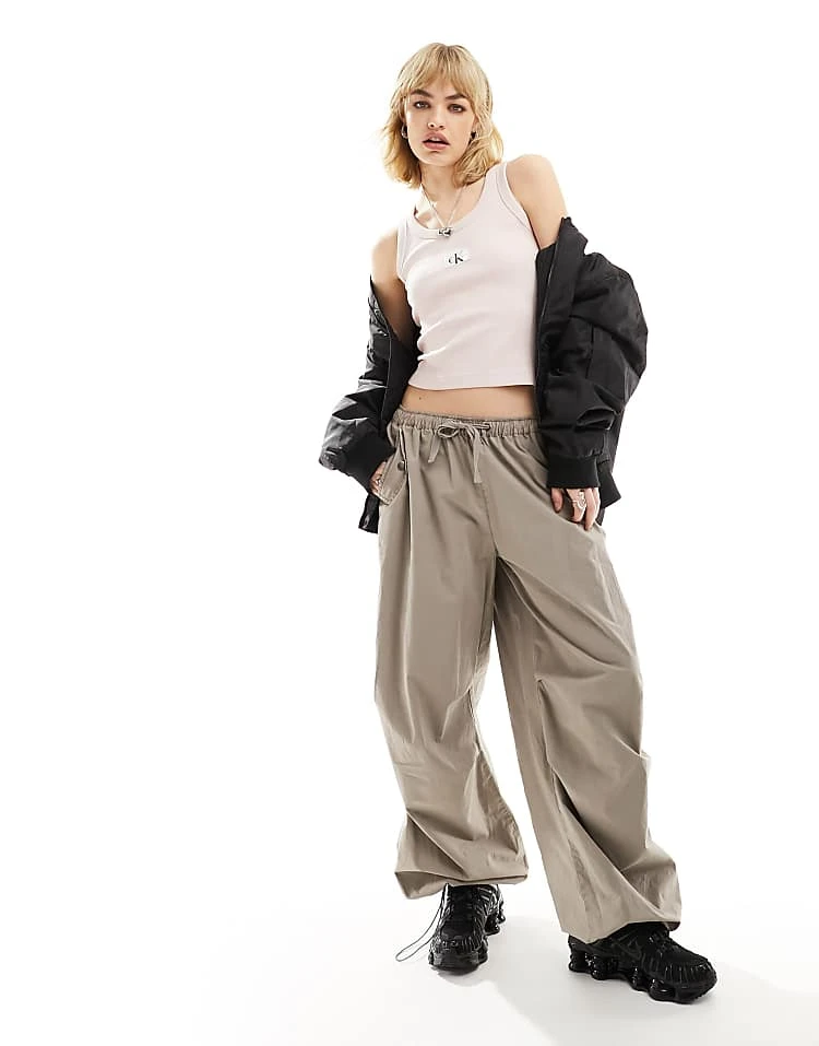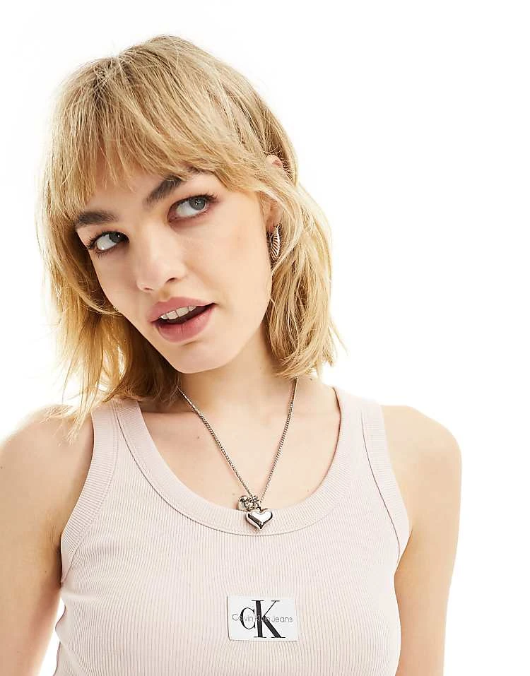 Calvin Klein Jeans Woven Label Rib Tank Top In Pink For Women Sepia Rose