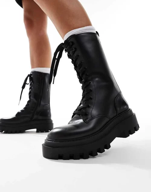Calvin Klein Jeans Flatform Lace Up Boot In Black For Women Triple Black