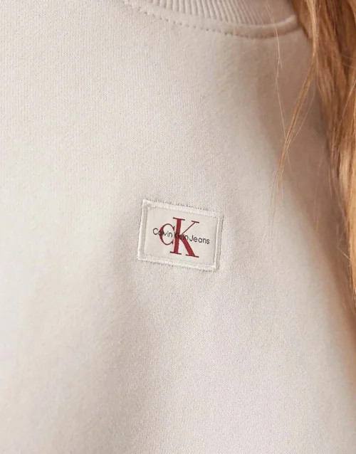 Calvin Klein Jeans Woven Label Sweatshirt In Off White For Women Chalk