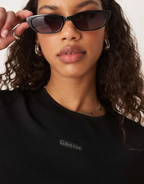 Calvin Klein Jeans Slim Stretch Knit Jumper In Ck Black For Women
