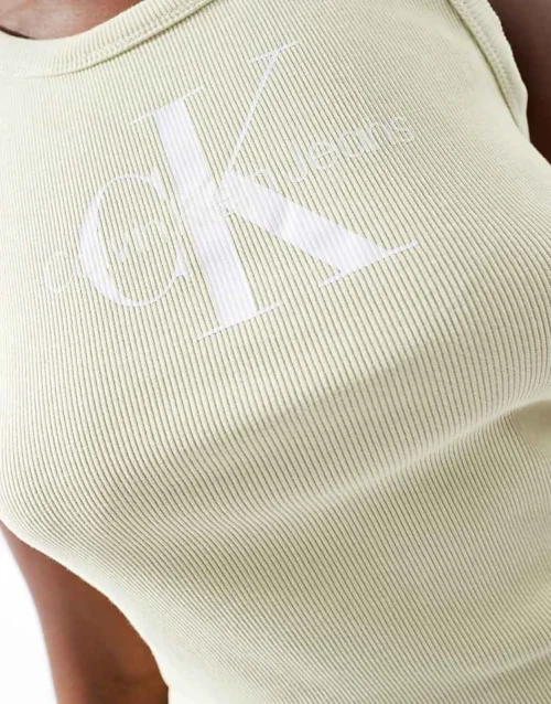 Calvin Klein Jeans Archival Monologo Rib Tank In Beige For Women Green Haze