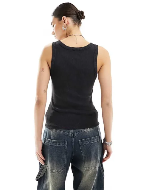 Calvin Klein Jeans Archival Monologo Rib Tank In Black For Women Ck Black