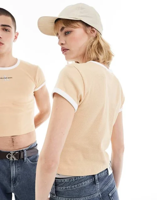 Calvin Klein Jeans Baby Ringer Tee In Beige – ASOS Exclusive For Unisex Cream Peach