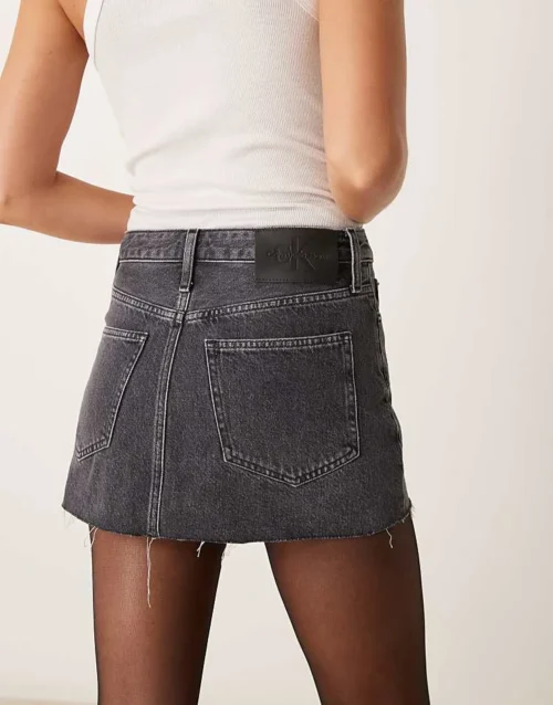 Calvin Klein Jeans Raw Hem Denim Mini Skirt On Washed Grey – ASOS Exclusive For Women Denim Grey