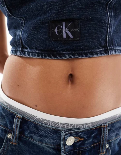 Calvin Klein Jeans Denim Tube Top In Dark Wash For Women Denim Dark