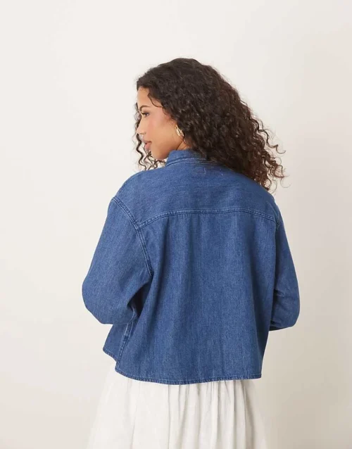 Calvin Klein Jeans Cropped Denim Dad Shirt In Denim Medium For Women